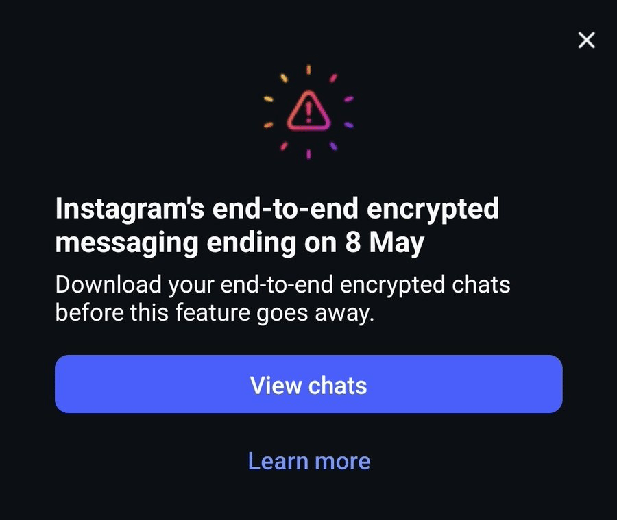 🤯 🔓 💬 Instagram ending support for end-to-end encrypted messaging after 8 May 2026 - https://help.instagram.com/491565145294150