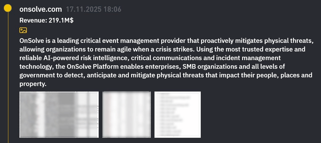 Figure: OnSolve entry on the INC Ransom data leak site/BleepingComputer
